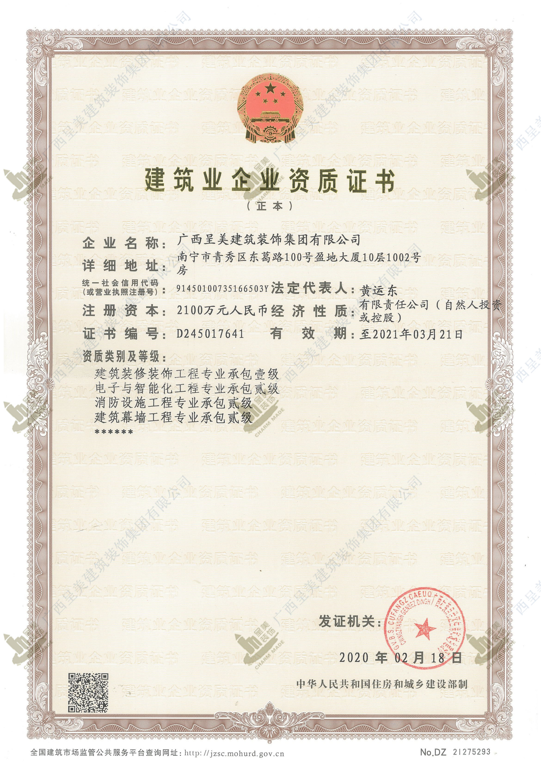 建筑裝修裝飾工程專業(yè)承包壹級